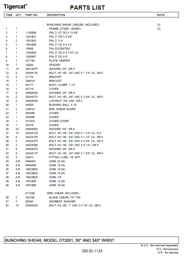 TIGERCAT 2000. SHEAR HEAD PARTS CATALOGUE MANUAL (201001 - 203000) - PDF FILE DOWNLOAD