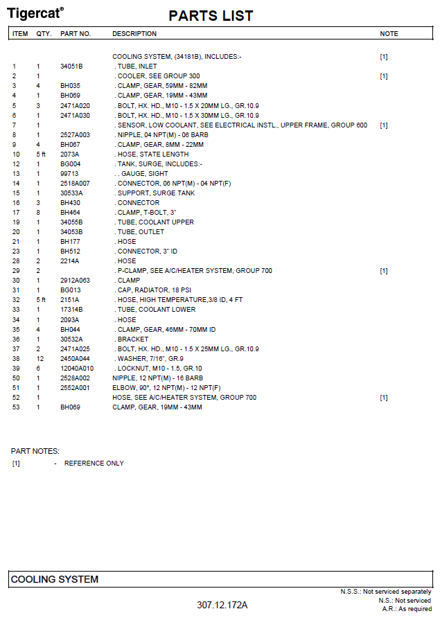 TIGERCAT 220C PARTS CATALOGUE MANUAL