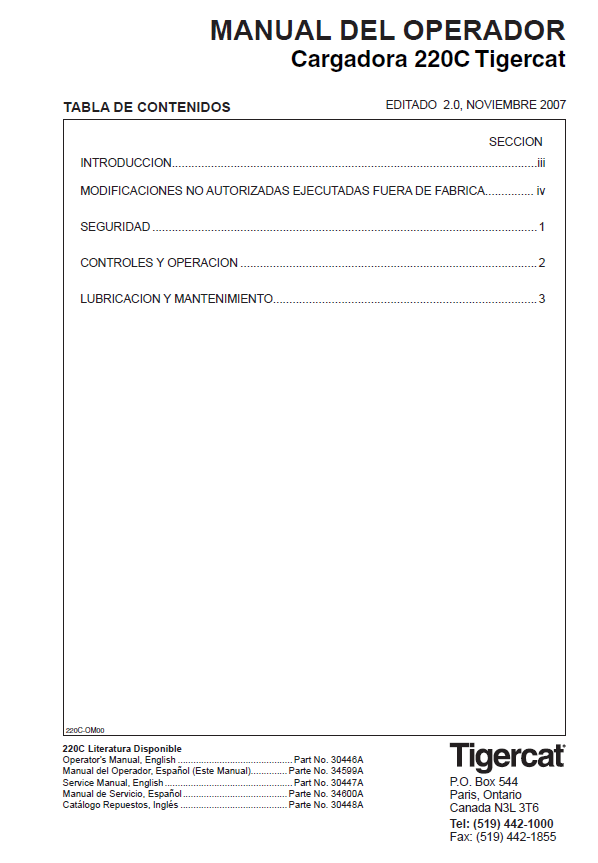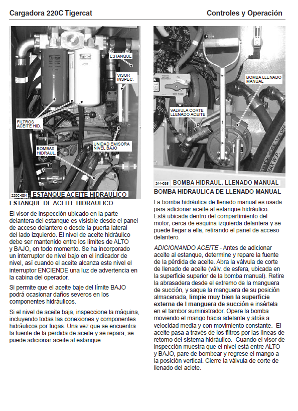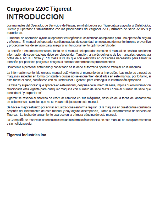 Download Complete Operator Manual For Tigercat 220C Loader | Serial No. (2200501-2200600) - Spanish