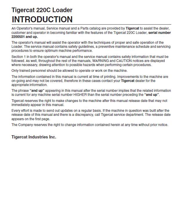 TIGERCAT 220C LOADER SERVICE MANUAL