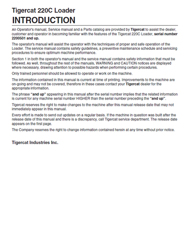 Download Complete Service Repair Manual For Tigercat 220C Loader | Serial No. (2200501-2200600)