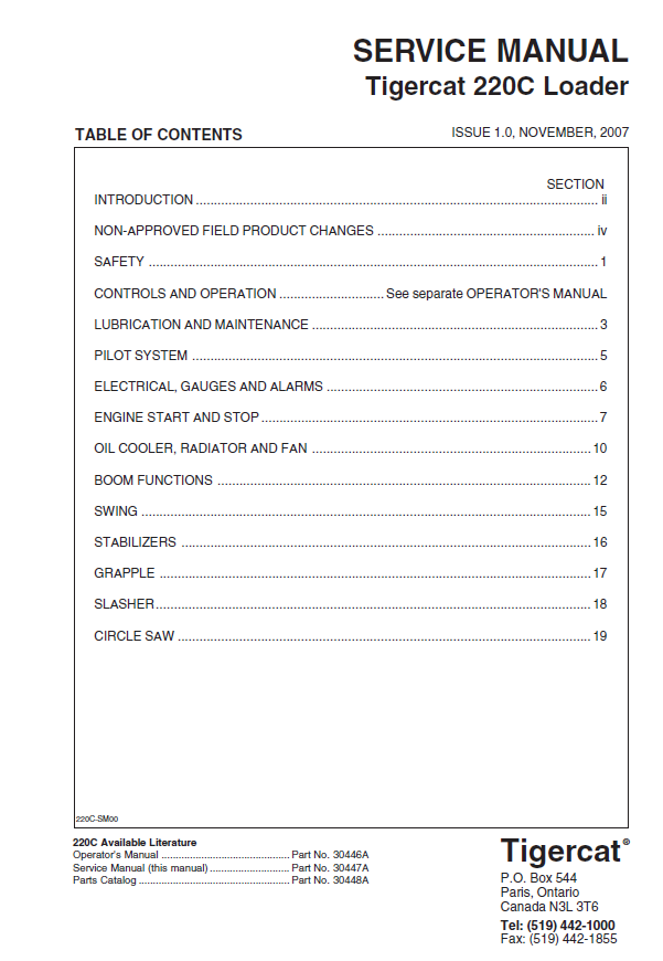 TIGERCAT 220C LOADER REPAIR MANUAL