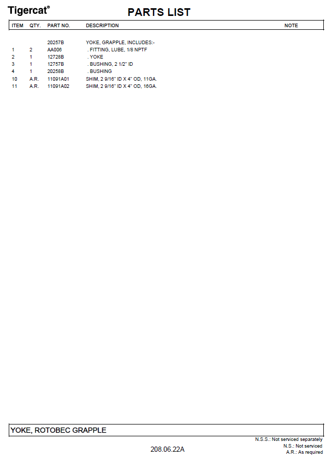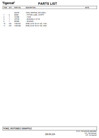 TIGERCAT 220D PARTS CATALOGUE MANUAL
