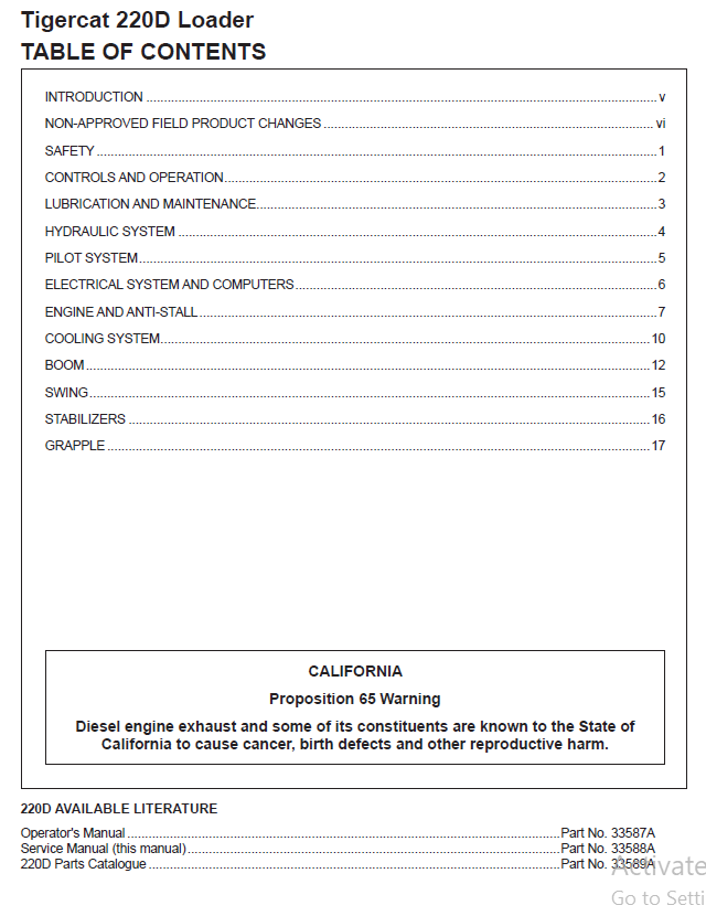 vTIGERCAT 220D LOADER SERVICE MANUAL