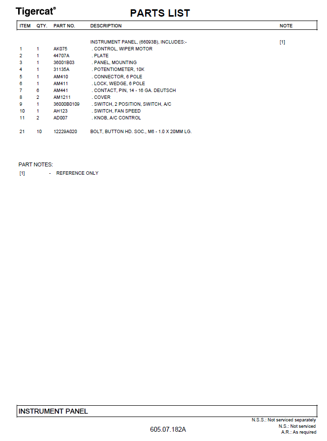 TIGERCAT 220E PARTS CATALOGUE MANUAL