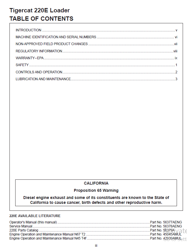 Download Complete Operator Manual For Tigercat 220E Loader | Serial No. (2201001-2201500)