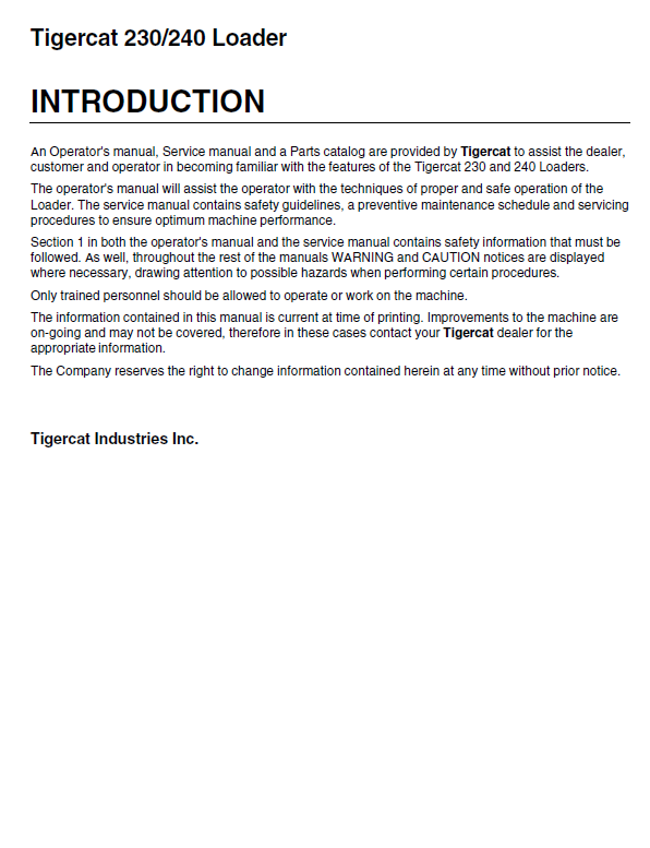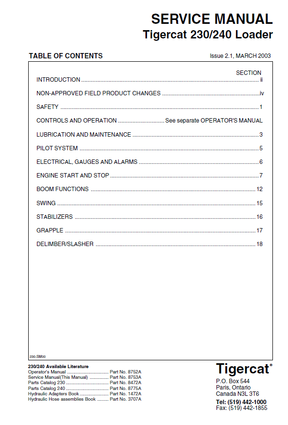 TIGERCAT 230 SERVICE MANUAL