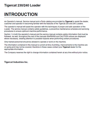 TIGERCAT 230 LOADER SERVICE REPAIR MANUAL (2300101-2300499) - PDF FILE DOWNLOAD