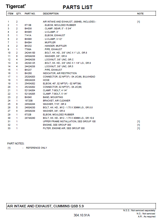 Download Complete Parts Catalogue Manual For Tigercat 230B Loader