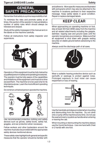 The Tigercat 230B Loader Operator Manual is the perfect source of detailed information on the operation and maintenance of the Tigercat 230B Loader. This PDF download provides a comprehensive guide to the features and operation of the machine, including safety measures, troubleshooting tips, and detailed diagrams.