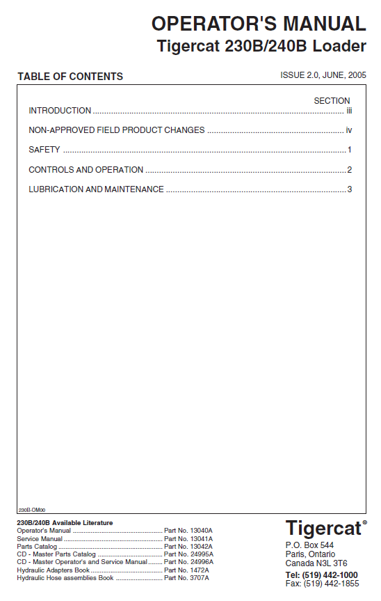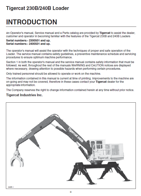 Download Complete Operator Manual For Tigercat 230B Loader | Serial No. (2300501-2301500)