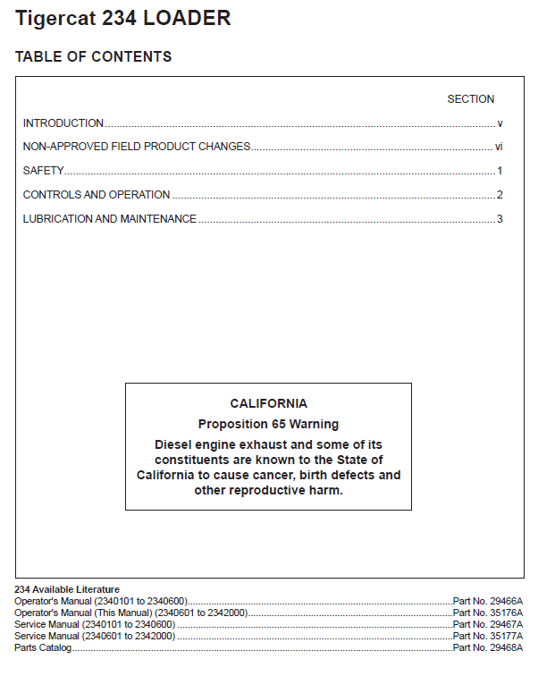 Download Complete Operator Manual For Tigercat 234 Loader | Serial No. (2340101-2342100, 2340601-2342000)