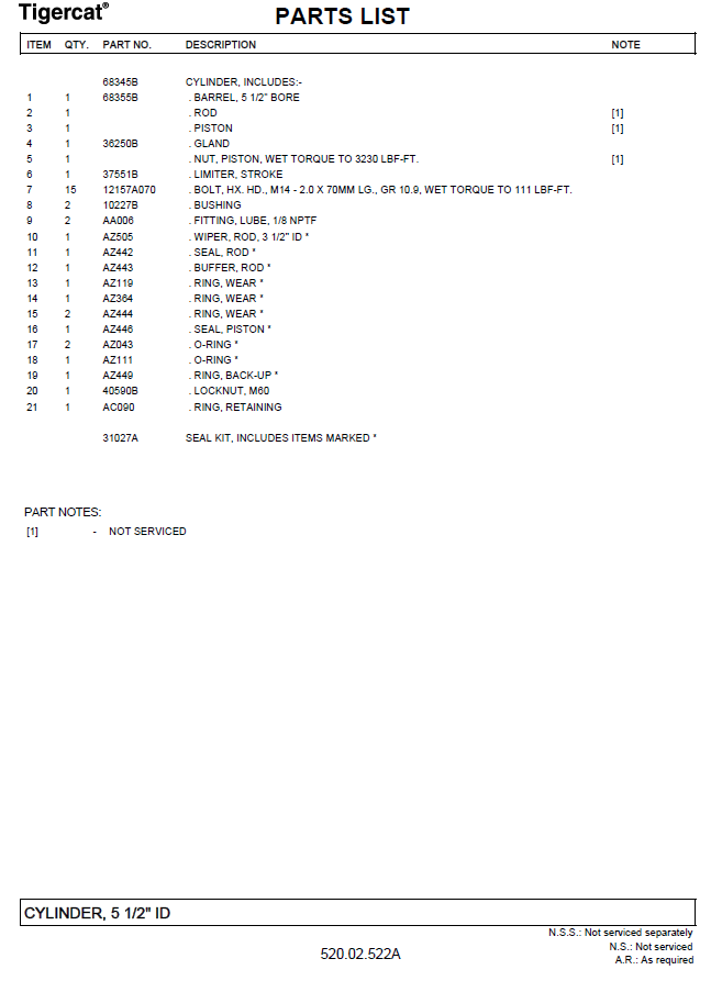 Download Complete Parts Catalogue Manual For Tigercat 234B Loader 2342101 - 2344000