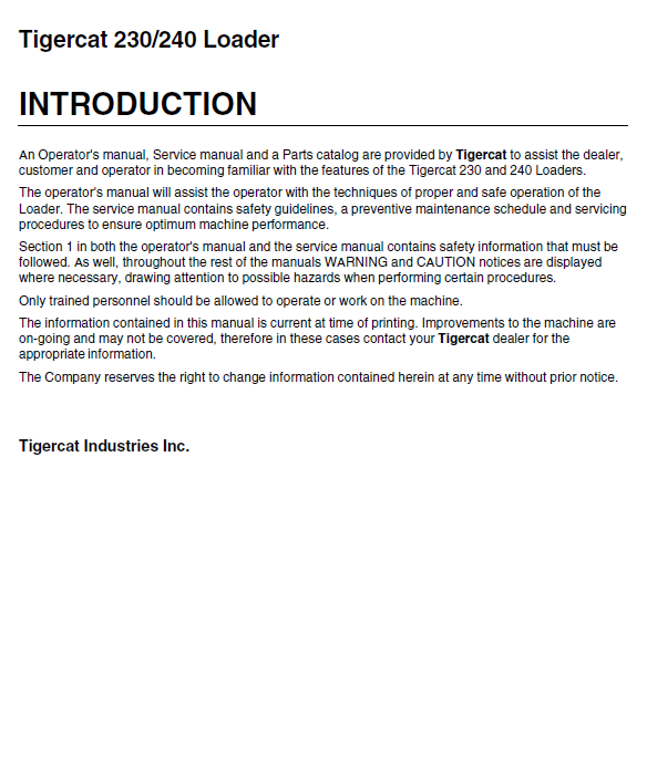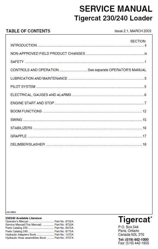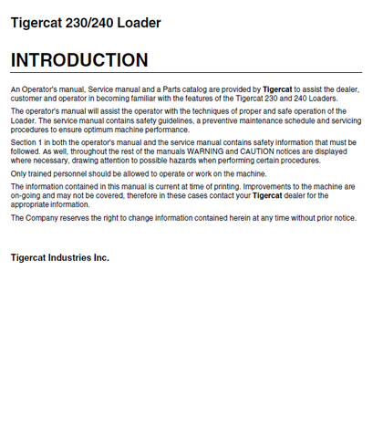 TIGERCAT 240 LOADER SERVICE REPAIR MANUAL (2400101-2400499) - PDF FILE DOWNLOAD