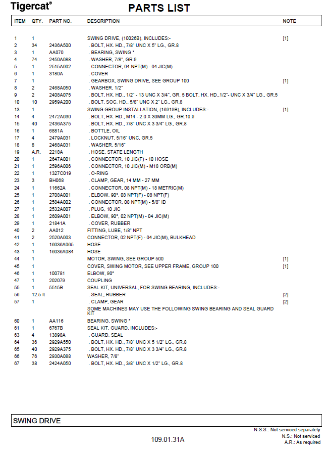 Downoad Complete Parts Catalogue Manual For Tigercat 240B Loader 2400501 - 2401500