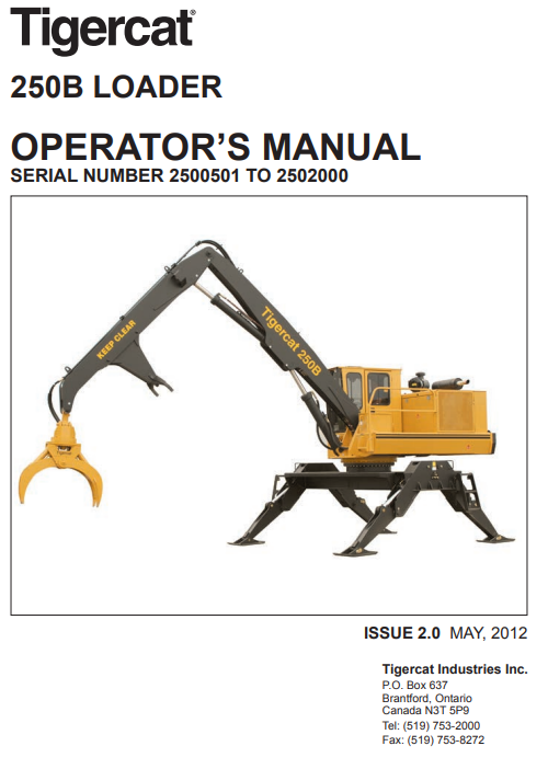 Download Complete Operator/User Manual PDF For Tigercat 250B Loader | Serial No. (2500501-2502000)
