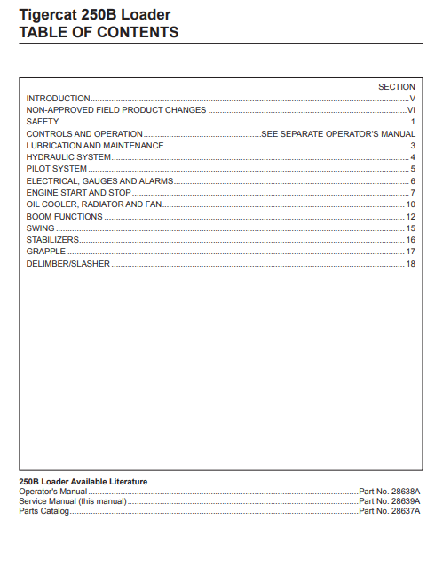 Download Complete Service Repair Manual PDF For Tigercat 250B Loader | Serial No. (2500501-2502000)