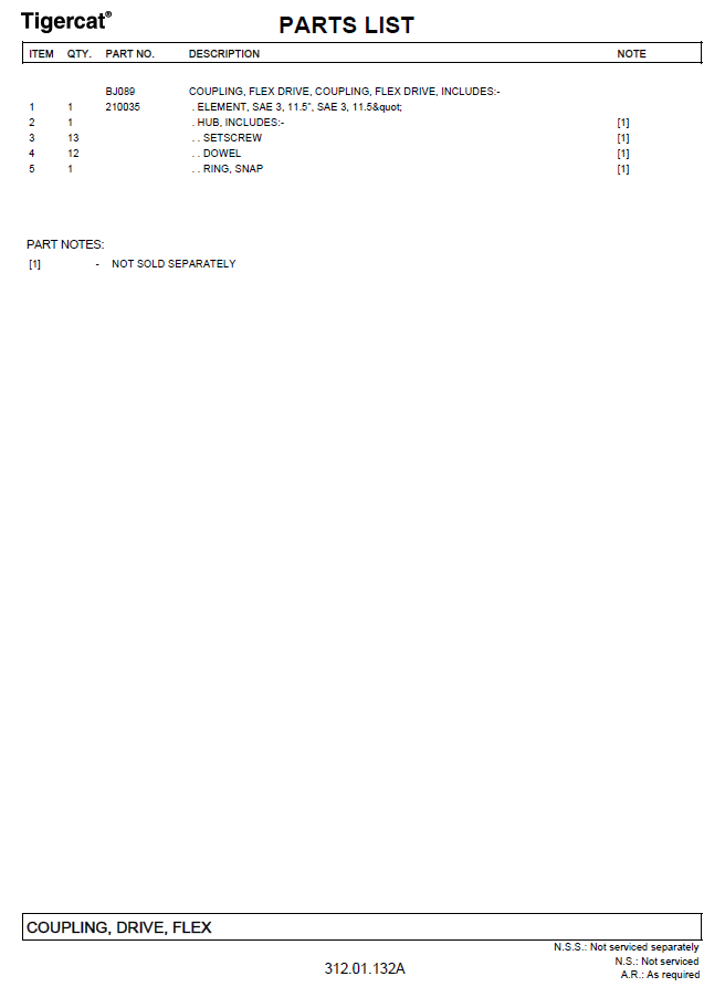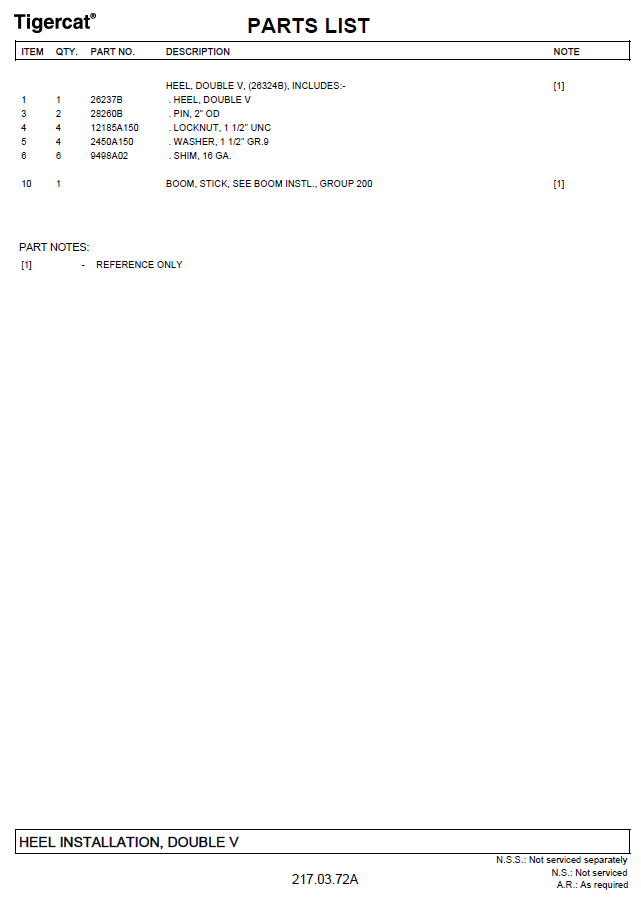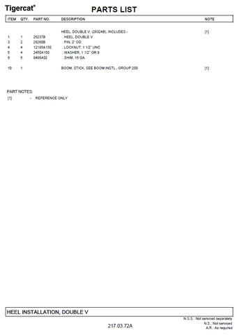 TIGERCAT 250D PARTS CATALOGUE MANUAL