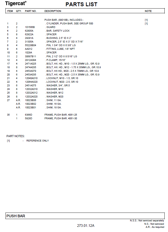 TIGERCAT 4061 PARTS CATALOGUE MANUAL