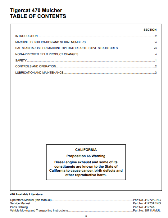 Introduction, Machine Identification And Serial Numbers, Standards For Machine Operator Protective Structures, Non-approved Field Product Changes, Regulatory Information, Warranty-epa, Safety, Controls And Operation, Lubrication And Maintenance