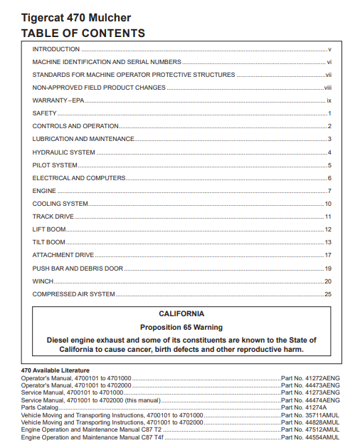 Download Complete Service Repair Manual PDF For Tigercat 470 Mulcher | Serial No. (4700101-4702000, 4701001-4702000)