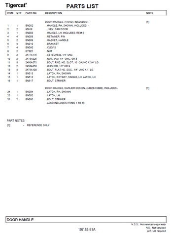 The Tigercat 480 Mulcher Parts Catalogue Manual provides access to detailed information for all part numbers 4800101 through 4801000. This resource includes diagrams, descriptions, technical specifications, and safety information to reliably identify, purchase, and maintain the necessary parts to keep this powerful machine in top condition.