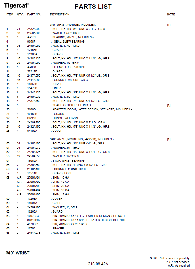Download Complete Parts Catalogue Manual For Tigercat 5185 Saw Head | Serial No. - (5185D102, 51850101 - 51850500)