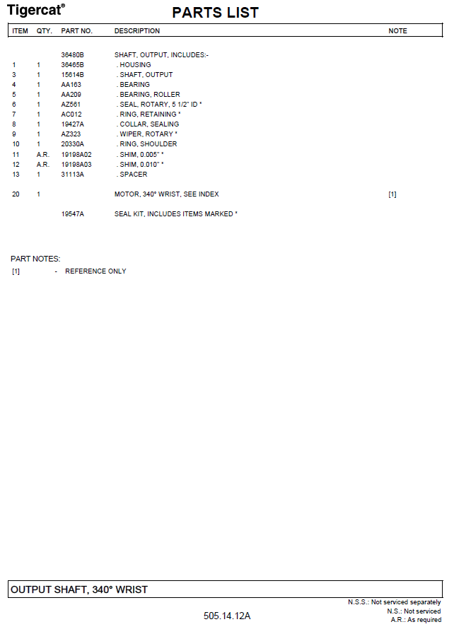 TIGERCAT 5185 SAW HEAD PARTS MANUAL