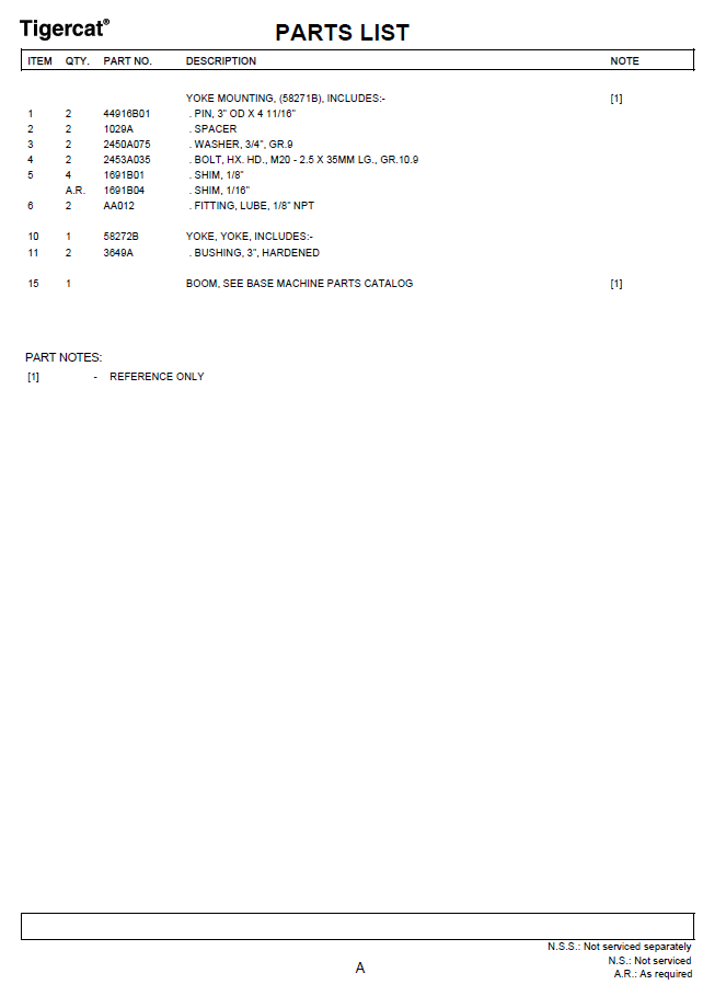 TIGERCAT 5195 PARTS CATALOGUE MANUAL