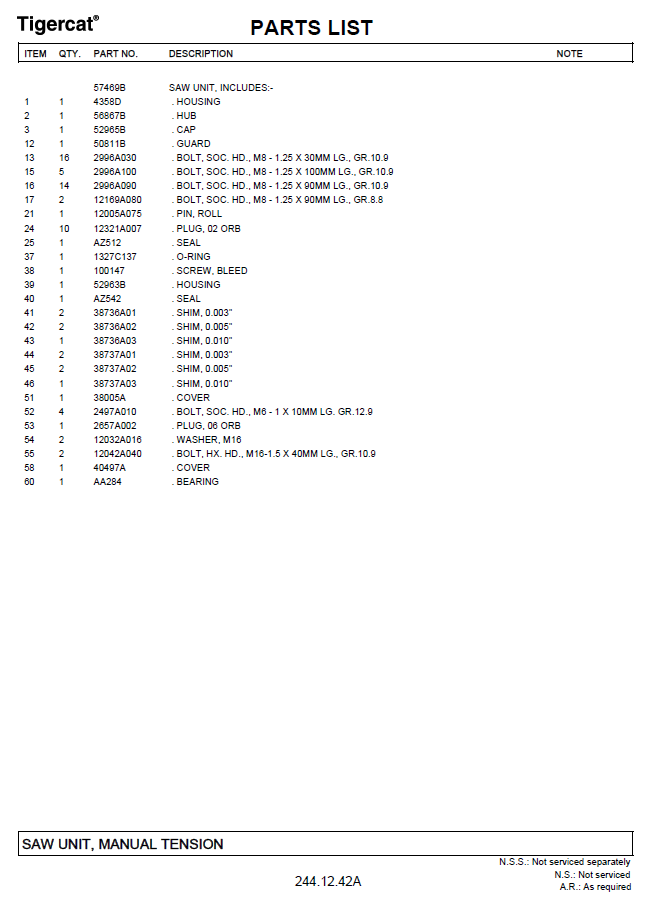 TIGERCAT 5195 SAW HEAD PARTS MANUAL