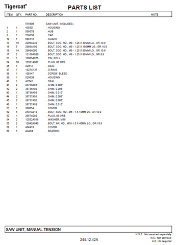 TIGERCAT 5195 SAW HEAD PARTS CATALOGUE MANUAL (51950101 - 51950500) - PDF FILE DOWNLOAD