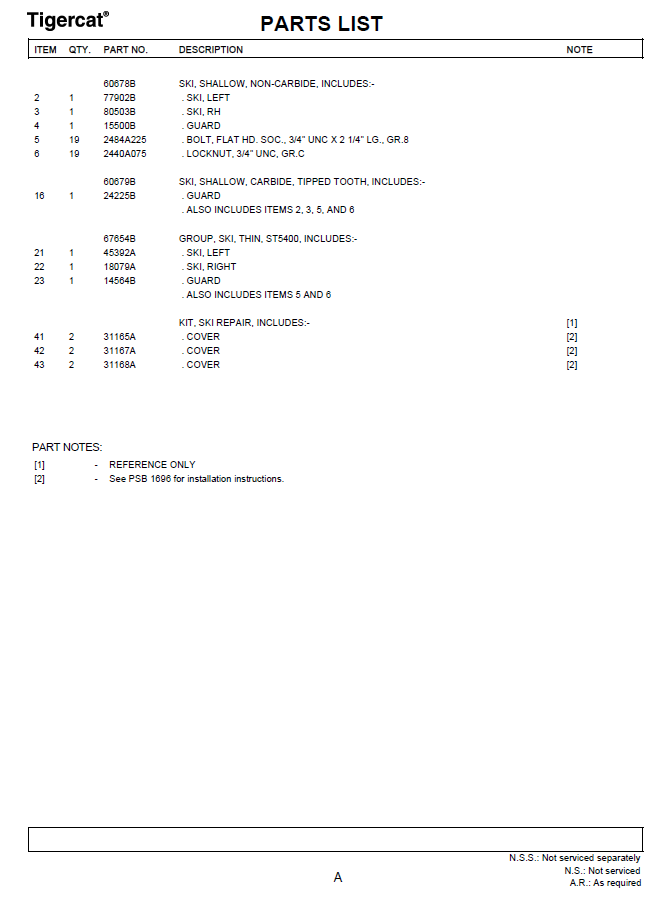 Download Complete Parts Catalogue Manual For Tigercat 5400 Saw Head | Serial No. - (54T0101 - 54T0500)
