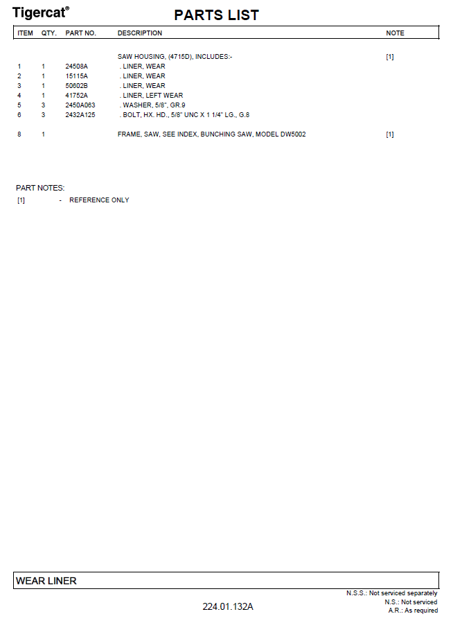 TIGERCAT 5500 SAW HEAD PARTS MANUAL