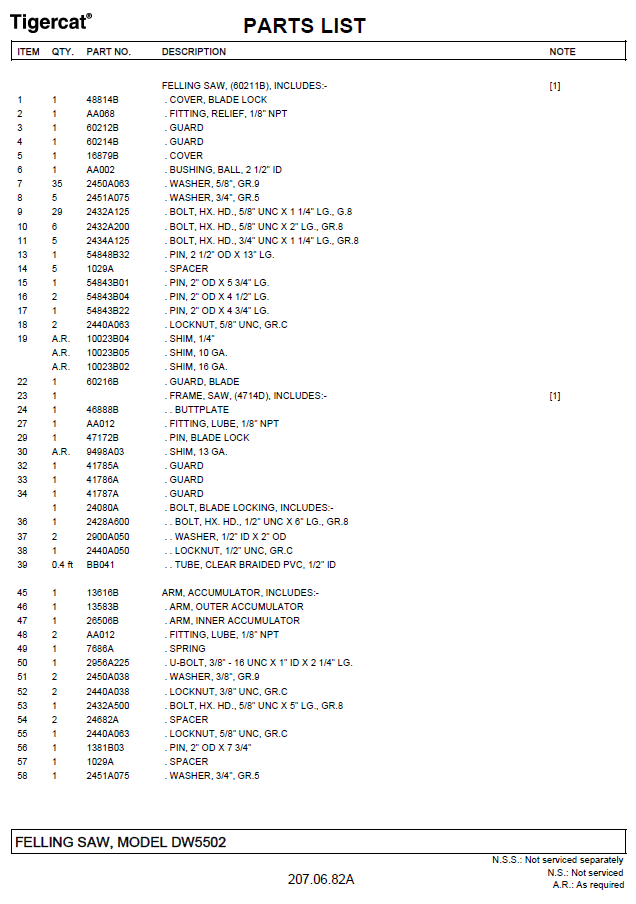 Download Complete Parts Catalogue Manual For Tigercat 5500 Saw Head | Serial No. - (55W0101 - 55W1000)