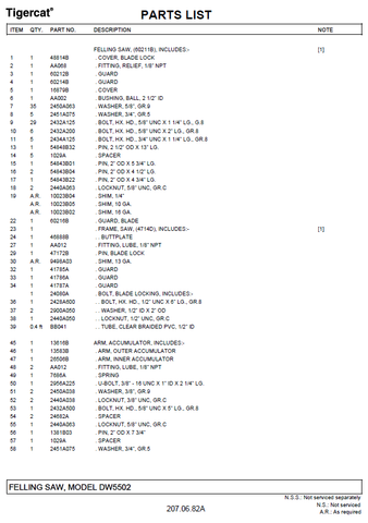 TIGERCAT 5500 SAW HEAD PARTS CATALOGUE MANUAL (55W0101 - 55W1000) - PDF FILE DOWNLOAD