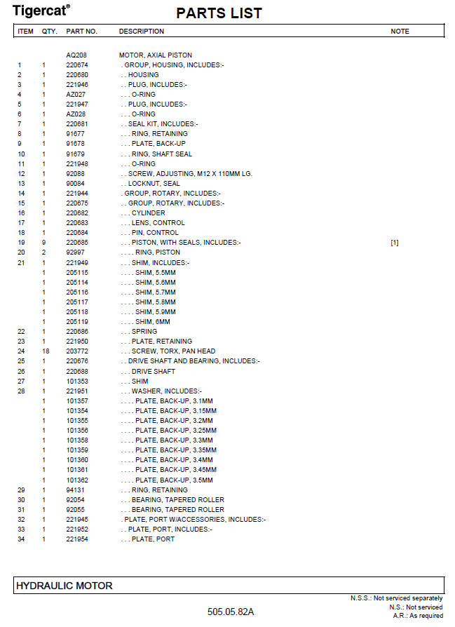 TIGERCAT 5600 SAW HEAD PARTS MANUAL