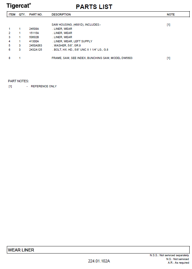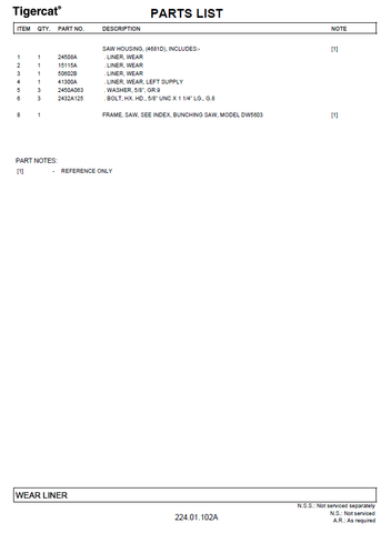 TIGERCAT 5600 SAW HEAD PARTS CATALOGUE MANUAL (56W0101 - 56W2000) - PDF FILE DOWNLOAD