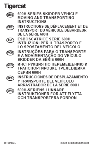 Download Complete Moving Instructions Manual PDF For Tigercat 600H Series Skidder | Serial No. (6306001-6307000)
