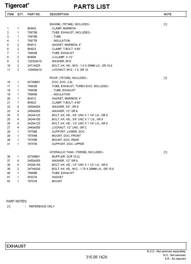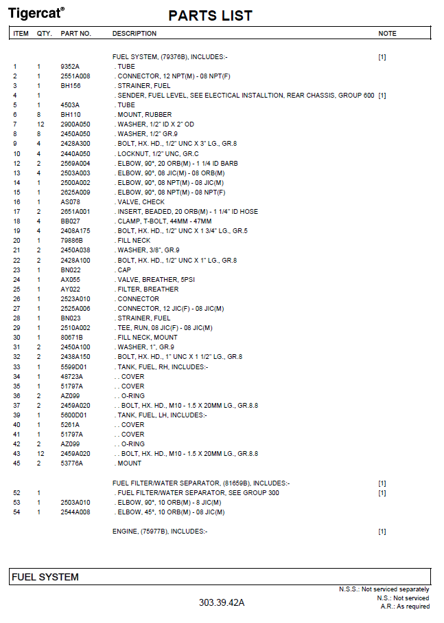 TIGERCAT 602. PARTS CATALOGUE MANUAL