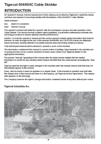 Tigercat 604 Cable Skidder Service Repair Manual (6040101-6040200) - PDF File Download