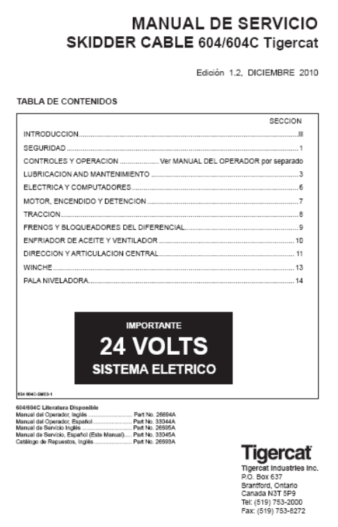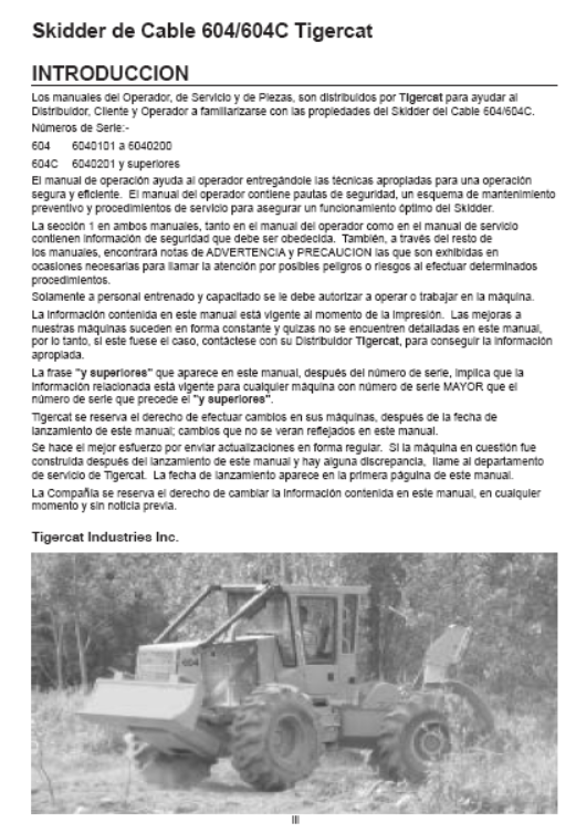 Download Complete Service Repair Manual PDF For Tigercat 604 Cable Skidder | Serial No. (6040101-6040200) - Spanish