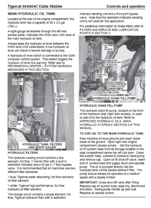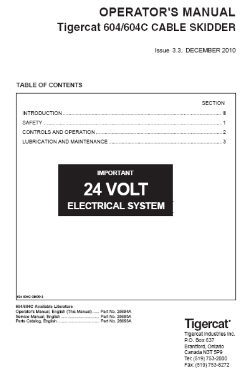 Download Complete Operator/User Manual PDF For Tigercat 604C Cable Skidder | Serial No. (6040201-6041000, 6040201-6040500)