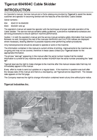 Learn how to operate and maintain your Tigercat 604C Cable Skidder with this comprehensive operator/user manual. Easily downloaded in PDF format, this manual covers all the necessary information and techniques to ensure efficient and safe use of your skidder. Perfect for both experienced and novice operators, this manual is a must-have for maximizing productivity and minimizing downtime.