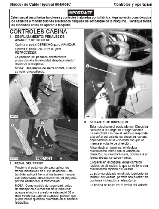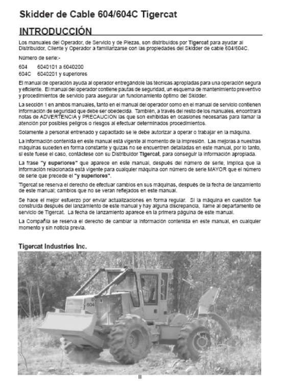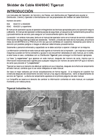 Download Complete Operator/User Manual PDF For Tigercat 604C Cable Skidder | Serial No. (6040201-6041000, 6040201-6040500) - Spanish