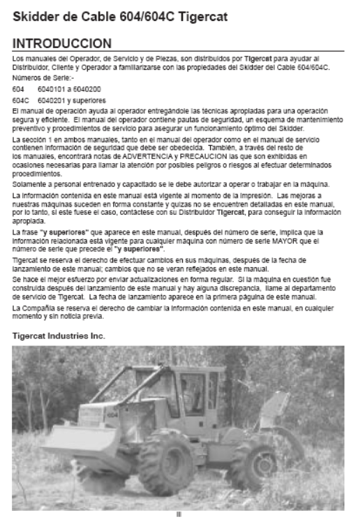 Download Complete Service Repair Manual PDF For Tigercat 604C Cable Skidder | Serial No. (6040201-6041000, 6040201-6040500) - Spanish