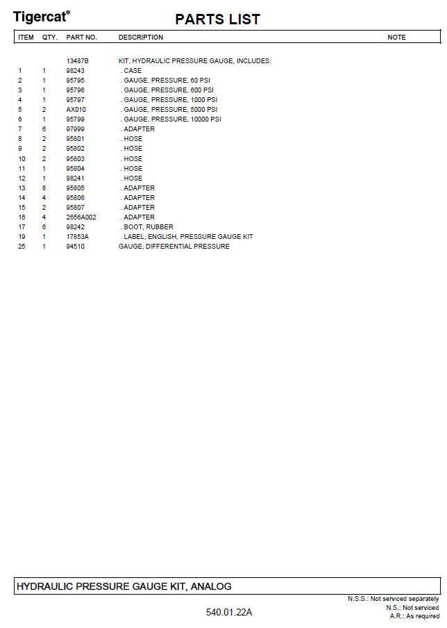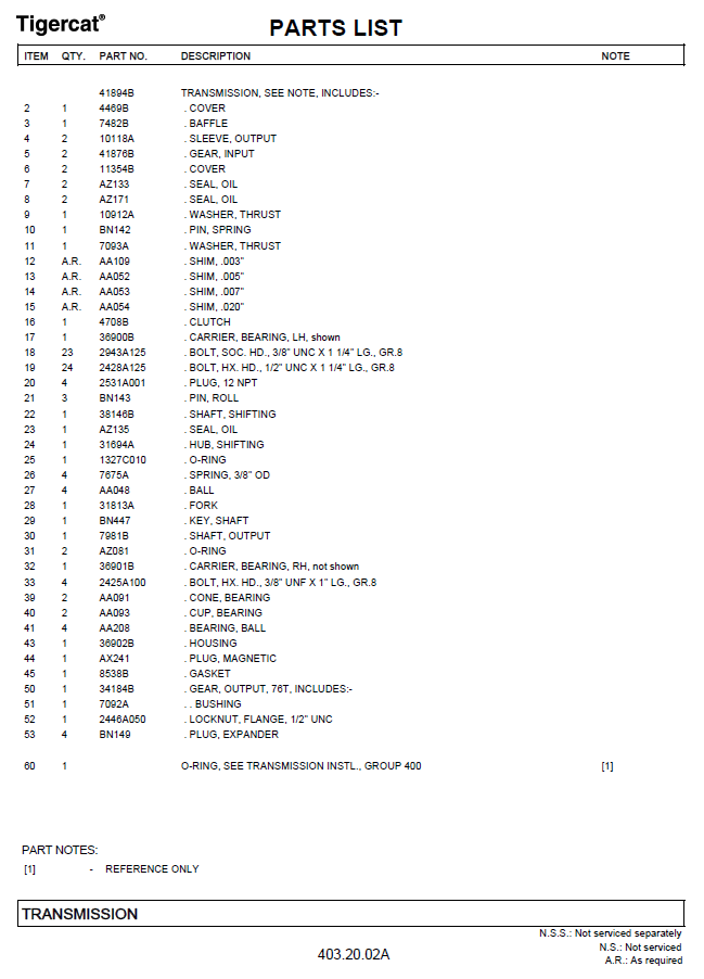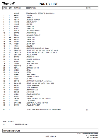 TIGERCAT 604C PARTS CATALOGUE MANUAL