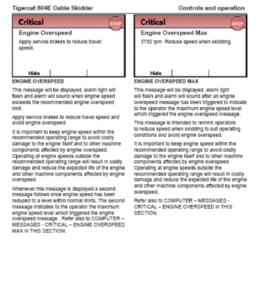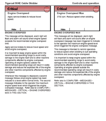 Download Complete Operator/User Manual PDF For Tigercat 604E Cable Skidder | Serial No. (6041001-6042000)
