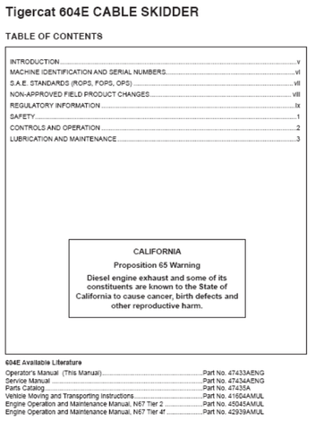 Tigercat 604E Cable Skidder Operator/User Manual (6041001-6042000) - PDF File Download