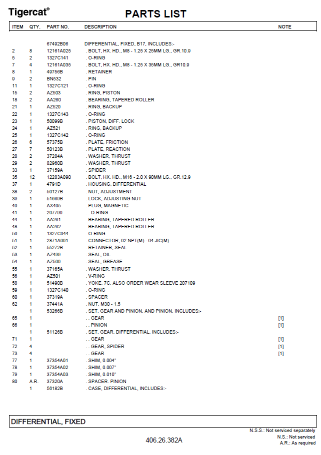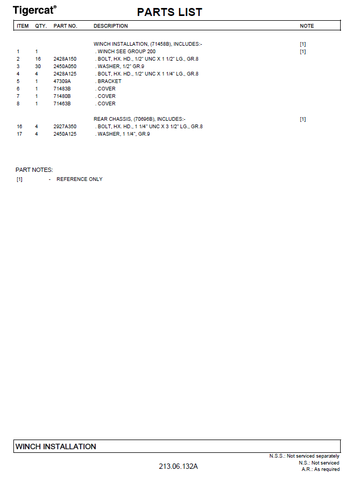 TIGERCAT 604E PARTS CATALOGUE MANUAL