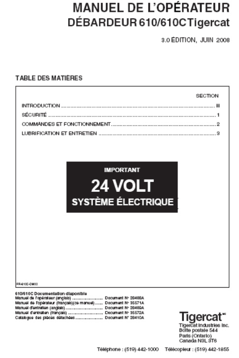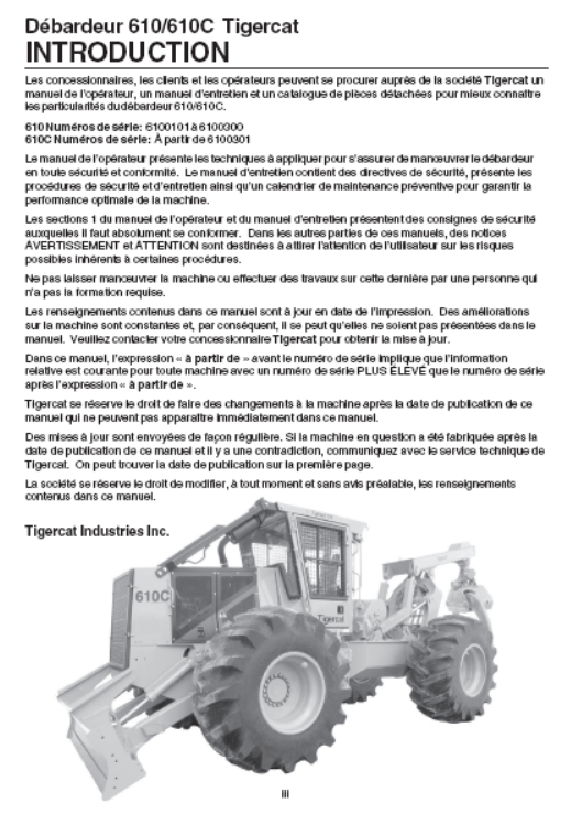 Download Complete Operator/User Manual PDF For Tigercat 610 Skidder | Serial No. (6100101-6100300) - French